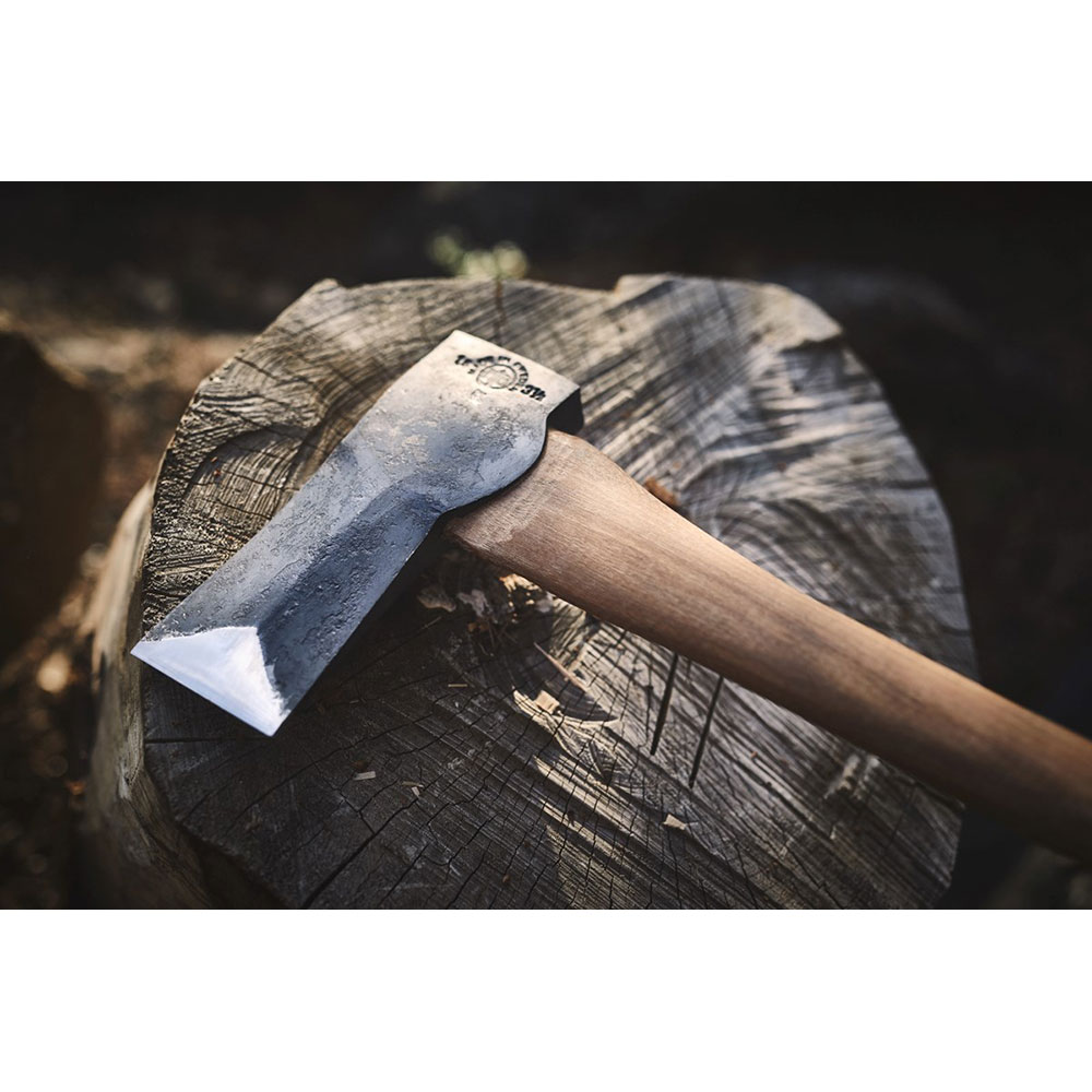 O machado comum está amplamente disponível em vários tamanhos e pesos. Possui uma lâmina relativamente longa em uma cabeça estreita. É versátil, mas geralmente é usado para cortar madeira. A boa notícia é que eles podem ser comprados em praticamente todos os tamanhos e pesos. Desde pequenos machadinhos de uma mão, que são úteis em passeios ou churrascos, até machados realmente massivos com peso de 1,6 kg. Assim, todos podem escolher de acordo com suas preferências, uso de trabalho ou condição física. Um excelente exemplo de machado de camping de qualidade de nossa oferta é o Hultafors Hultan.