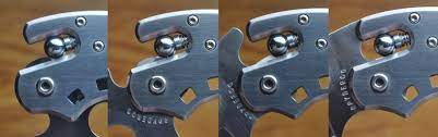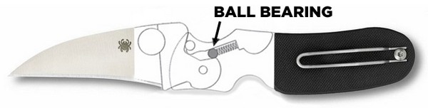 Um bloqueio de compressão patenteado que encaixa um rolamento de esferas entre uma bigorna fixa e a ponta da lâmina. O mecanismo também serve como um batente para manter a lâmina na posição fechada. É usado de forma semelhante ao Axis Lock, mas em vez de molas Omega, uma mola helicoidal clássica é usada para mover o mecanismo.