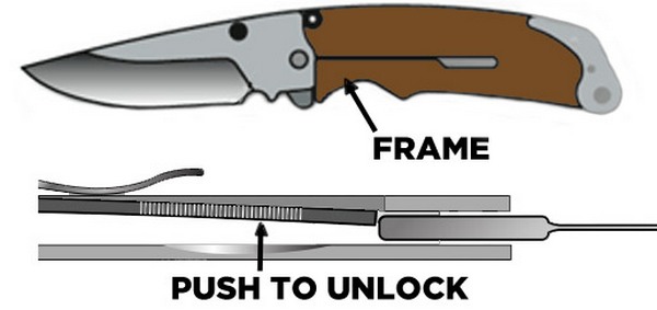 Facas com Framelock são fortes, confiáveis e abundantes. O bloqueio de quadro é muito semelhante ao liner lock. A principal diferença é que, em vez de uma inserção de metal servindo como trava, o próprio quadro da faca serve para bloquear a lâmina. Os bloqueios de quadro são frequentemente encontrados em facas com cabo de titânio, pois o titânio é muito resistente a forças de torção. Este sistema de bloqueio (às vezes chamado de Reeve Integral Lock) foi inventado e popularizado por Chris Reeve.