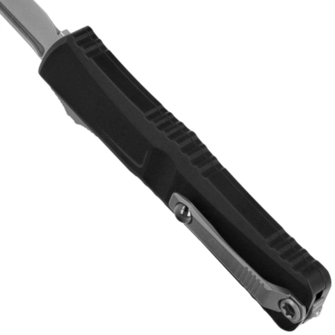 A lâmina tipo tanto com fio liso e desbaste plano é feita de aço inoxidável M390MK com acabamento stonewash, desenvolvido exclusivamente para a Microtech. Oferece melhor retenção de fio, resistência à corrosão e polimento. O mecanismo de deslizamento duplo de polegar da faca permite uma implantação e retração suave e confiável da lâmina com uma única mão.