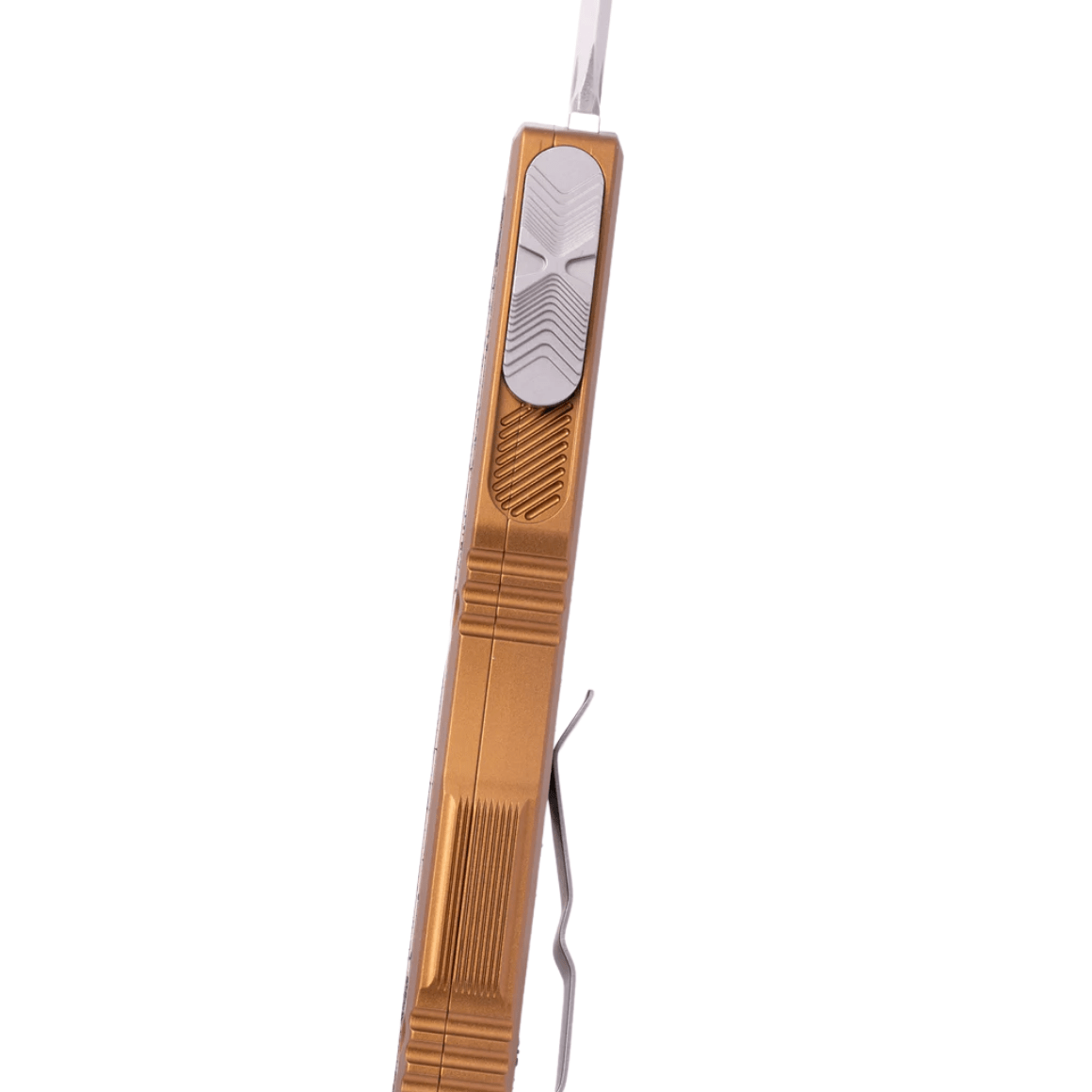 A lâmina de ponta drop point com fio liso e desbaste plano é feita de aço inoxidável M390MK com acabamento stonewash, produzido exclusivamente para a Microtech. Oferece excelente retenção de fio, alta resistência à corrosão e desempenho de corte duradouro.