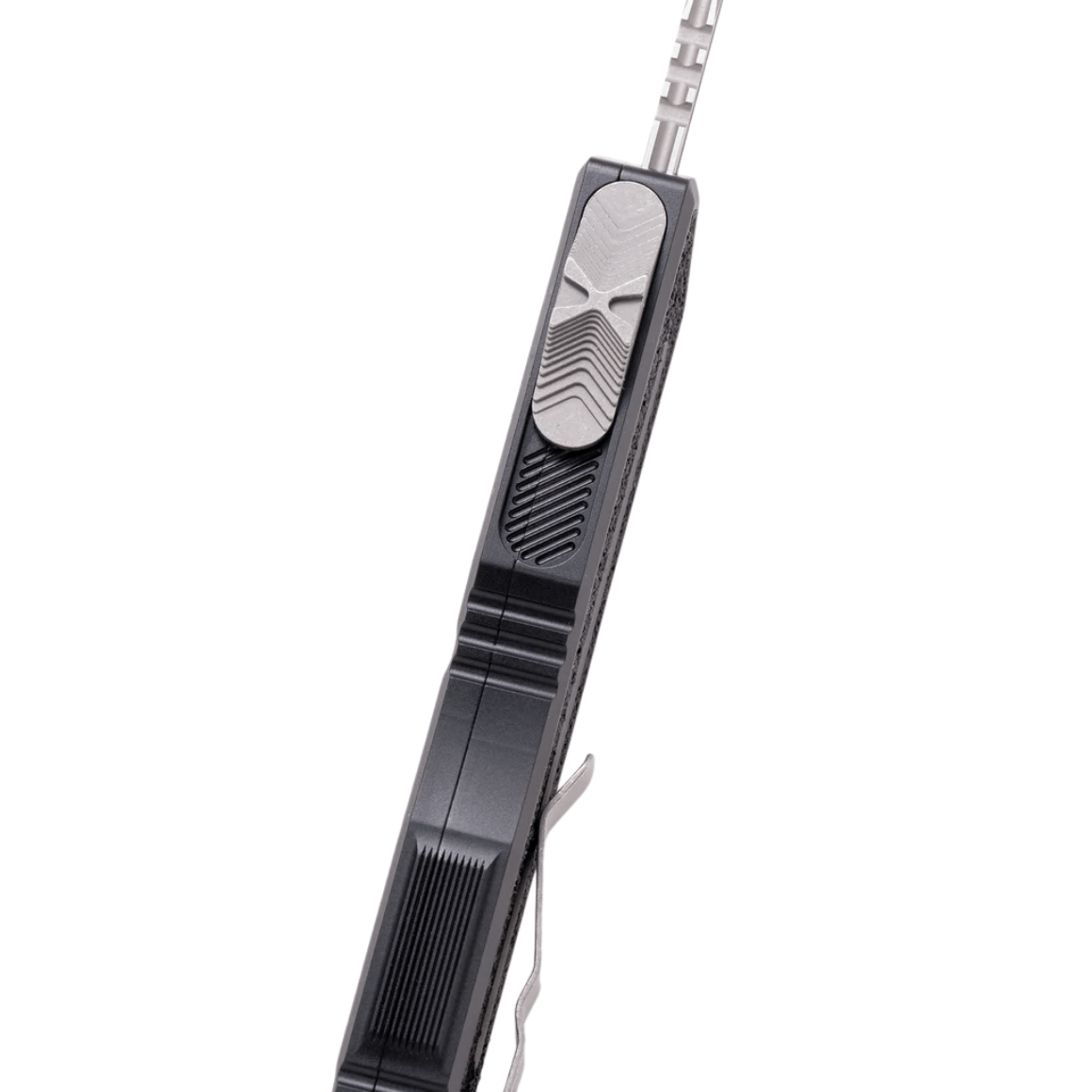 A lâmina tanto com fio liso e desbaste plano é feita de aço inoxidável M390MK com acabamento Apocalyptic, desenvolvido exclusivamente para a Microtech. Oferece excelente retenção de fio, alta resistência à corrosão e desempenho de corte duradouro.