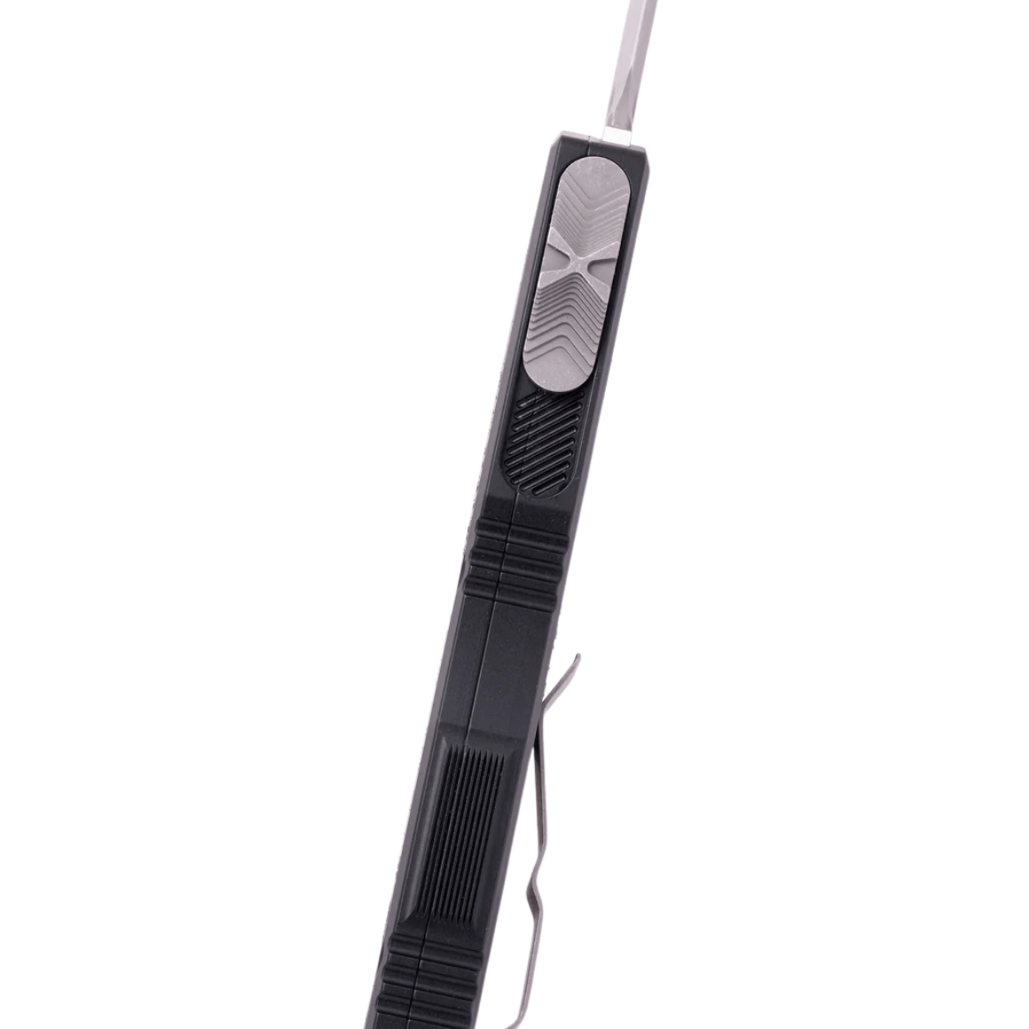 A lâmina de ponta drop point com fio liso e desbaste plano é feita de aço inoxidável Apocalyptic M390MK, desenvolvido exclusivamente para a Microtech. Oferece excelente retenção de fio, alta resistência à corrosão e desempenho de corte duradouro.