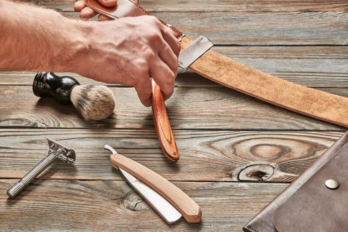 A navalha é afiada em uma pedra de afiar com granulação de pelo menos 8000, idealmente 12000. Recomenda-se o uso de pedras sintéticas devido à sua homogeneidade e à baixa probabilidade de defeitos que possam comprometer o fio durante o processo de afiação. Na pedra, a navalha é afiada colocando-a plana sobre a pedra nivelada (veja pedras de comparação), e puxando-a cuidadosamente pelo fio primeiro. Quando chegamos ao final, viramos a navalha sobre a espinha (parte cega ao longo da borda superior da lâmina) para o outro lado e repetimos o processo para o outro lado do fio. Devemos manter uma pressão leve e constante ao longo de todo o comprimento do fio, para evitar um desgaste assimétrico que afetaria a qualidade do barbear. O fio é então esticado antes de cada barbear em uma tira de couro, o que ajuda a alinhar o fio e suavizar irregularidades que poderiam causar cortes durante o barbear. O esticamento na tira é feito (ao contrário da afiação na pedra) com a espinha à frente, para não danificar a tira e o fio afiado. Ao chegar ao final da tira, a navalha é novamente virada sobre a espinha para o outro lado, e o processo é repetido. A melhor tira é a russa de couro de cavalo da Sibéria. O fio da navalha é verificado da seguinte forma: