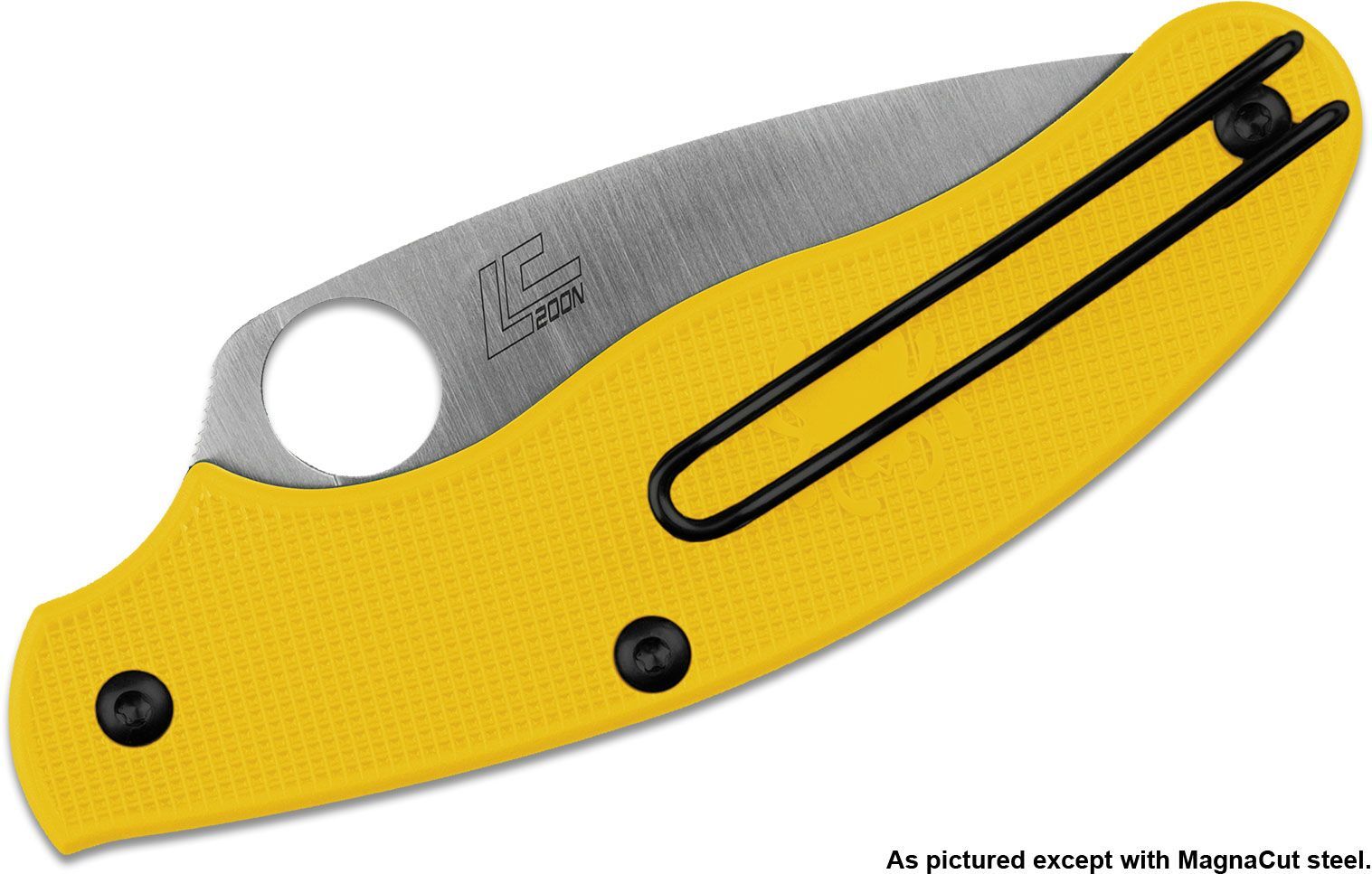 Esta faca é confiável e leve, adequada para o uso diário. A lâmina feita de aço premium MagnaCut é aberta pelo característico orifício Spyderco no cabo e é mantida na posição aberta por um sistema de mola Slipjoint. A faca não possui um verdadeiro mecanismo de bloqueio. O cabo é feito de material leve FRN. O clipe de bolso pode ser colocado em ambos os lados do cabo.